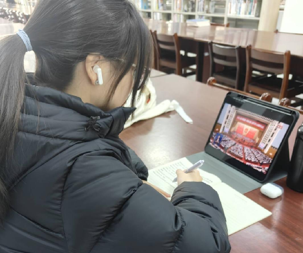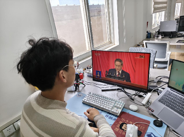 学生党员与青年学子则聚焦自身成长与专业发展,表达了青春担当。大家表示,两会中关于数字化转型、青年发展的部署与专业紧密相关,将以党员标准严格要求自己,深耕专业知识、锤炼过硬本领,积极参与科研项目与基层实践,把个人理想融入国家发展大局,以代码为笔、以专业为基,在人工智能、数字经济等领域勇毅前行,用青春算力为中国式现代化建设添砖加瓦。