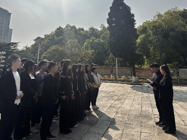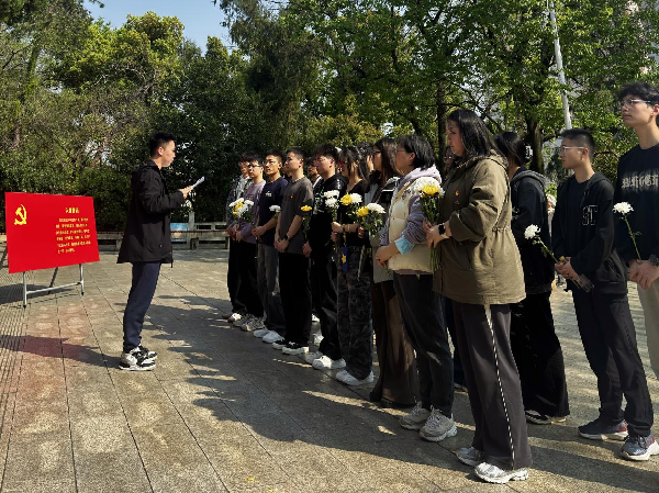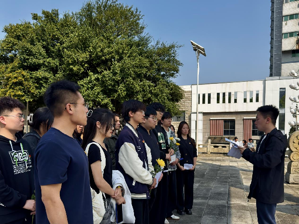 下午13时30分,全体党员在学校指定地点集合整队,支部书记朱晨进行出发前动员,强调活动纪律、安全事项与活动意义,为大家分发菊花等物资后统一前往施洋烈士陵园。