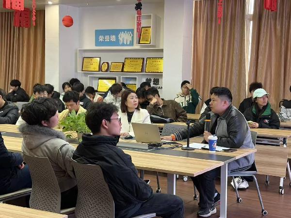 第一环节,辅导员吴桐为同学们带来考研调剂与复试专属指导。作为2021年考研调剂上岸双一流院校的优秀学长,吴老师不仅经验丰富,还持续关注考研形势变化,深耕调剂与复试研究领域,累计指导众多学子成功上岸,具备丰富的指导经验和独到的备考技巧。分享中,他结合自身经历与多年指导案例,详细梳理了考研调剂的关键节点与填报技巧,深入讲解了复试的备考重点与应对策略,内容翔实、干货满满,同学们受益匪浅。