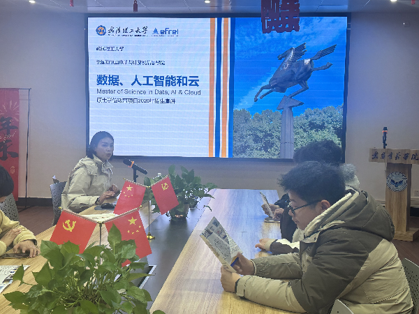 讲座进入第二环节,国教院胡瑞老师介绍了武汉理工大学负责数据、人工智能和云专业硕士学位教育项目的主讲嘉宾。该项目作为优质中外合作硕士项目,聚焦热门的数据、人工智能、云计算领域,贴合我院电子信息工程、物联网等专业的学科方向,能为同学们搭建专业的升学平台,助力大家在前沿科技领域继续深造。工作人员从项目具体招生要求、培养模式、就业前景等核心信息展开详细讲解,进一步拓宽了学子的升学视野。