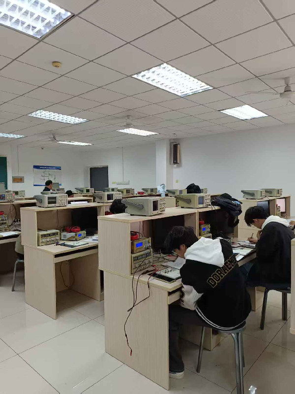 测试现场,学生们沉着冷静、有条不紊,从电路设计优化到测试平台搭建,从参数调试到故障排查,每一个环节都精益求精。示波器、万用表等仪器的熟练运用,故障点的精准定位,彰显着同学们对专业技能的极致追求。指导教师与实验员全程恪守职责,严格监督测试流程,密切关注操作细节,及时提供专业指导与答疑,确保测试公平、公正、有序开展。