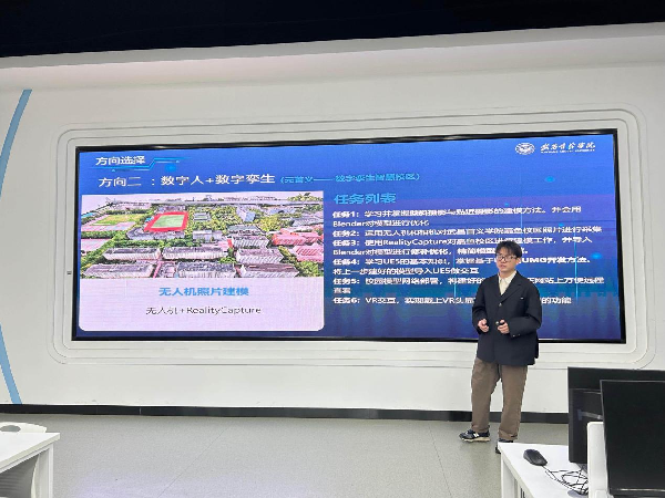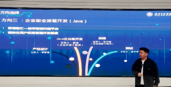 随后,各方向班主任依次上台,为在场师生展开介绍。“大模型+智能体” 方向班主任钟学洋老师,详细介绍了后续将围绕模型训练优化、智能体交互设计等模块开展的学习计划;“数字人+数字孪生” 方向班主任余哲老师,通过生动案例展示了数字人技术与数字孪生技术在农业、教育等领域的融合应用,并明确了后续学习中理论授课、项目实操任务等环节的安排;“企业级全流程开发” 方向班主任袁平宇老师,则聚焦企业实际开发需求,从需求分析、前后端开发、测试部署到运维,讲解了该方向的学习内容,让参训学生对后续学习路径有了清晰认知。