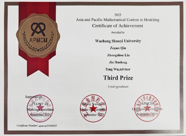 在近日公布的2025年亚太地区大学生数学建模竞赛(APMCM)获奖名单中,我校2024级电信物联网专业师生团队表现卓越,由辅导员吴桐老师指导的两支队伍分别斩获国家级一等奖与国家级三等奖,实现专业在该赛事中的历史性突破。此次竞赛共有全国多所高校参与,我校学子凭借扎实的专业基础、高效的团队协作和创新的解题思路,成为亚太地区数学建模领域的一匹“黑马”。