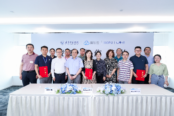◆ 2022年6月,武昌首义学院与腾讯云、武汉厚溥数字科技有限公司战略合作签约仪式在深圳市腾讯滨海大厦隆重举行。我校党委副书记、副校长金鑫,腾讯云华南生态总经理丁振海,武汉厚溥数字科技有限公司总经理李巧灵代表三方签订产教融合共建腾讯云产业学院合作协议。