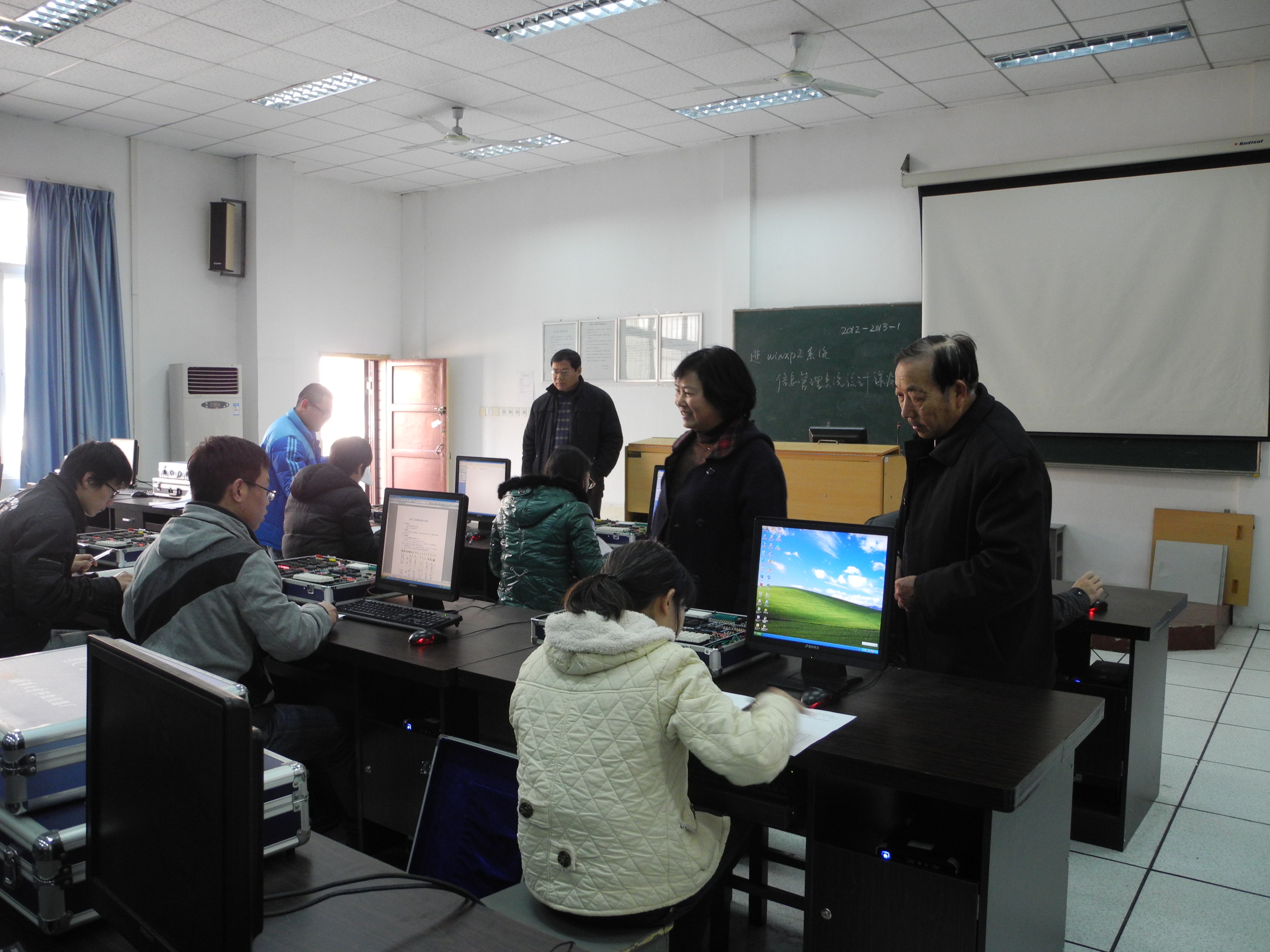 2012年12月12日,计算机科学与技术专业09级本科生分别在计算机中心机房201和4—201举行了“数学建模和计算能力”以及“数字系统分析与设计能力”的专业技能测试。学校顾问委韩晏生主任、欧阳星明院长和聂兵副院长亲临实验室查看学生测试情况。
