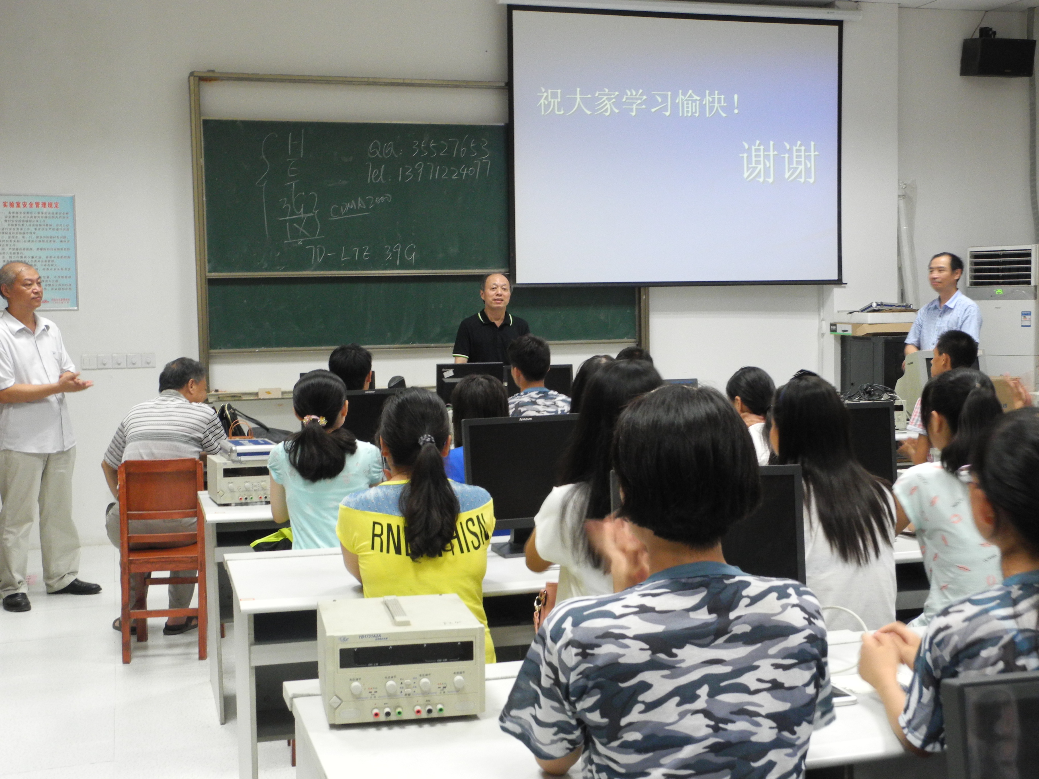 通信工程专业教育在实验室举行,教研室主任王思贤、副主任马玲分别就专业发展历程、基本情况、课程体系、考研与就业方向以及专业学习方法等向新生进行了介绍。实验室主任陈青向新生介绍了电子创新团队“电子爱好者协会”和大学生电子设计竞赛的情况,并请2012级电子爱好者协会学生讲解演示了电子设计竞赛培训期间的作品,新、老学生及专业教师进行了交流。