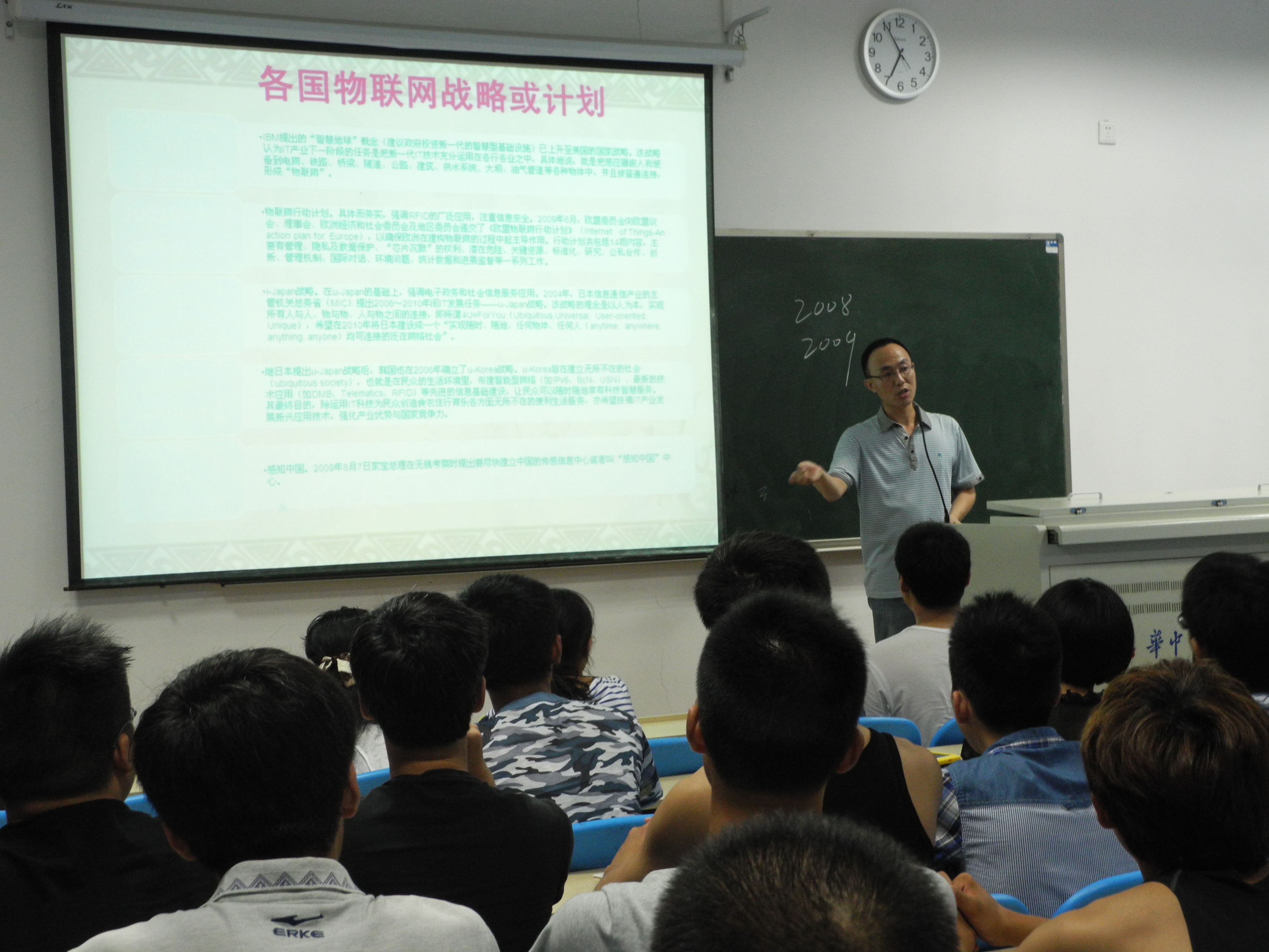 物联网工程专业教育在11-113举行,教研室副主任黄向宇向新生介绍了物联网新兴产业的发展情况、专业培养目标、专业特点及就业方向,通过视频展示了物联网技术广阔的应用前景,鼓励新生尽早确立目标,做好职业规划。