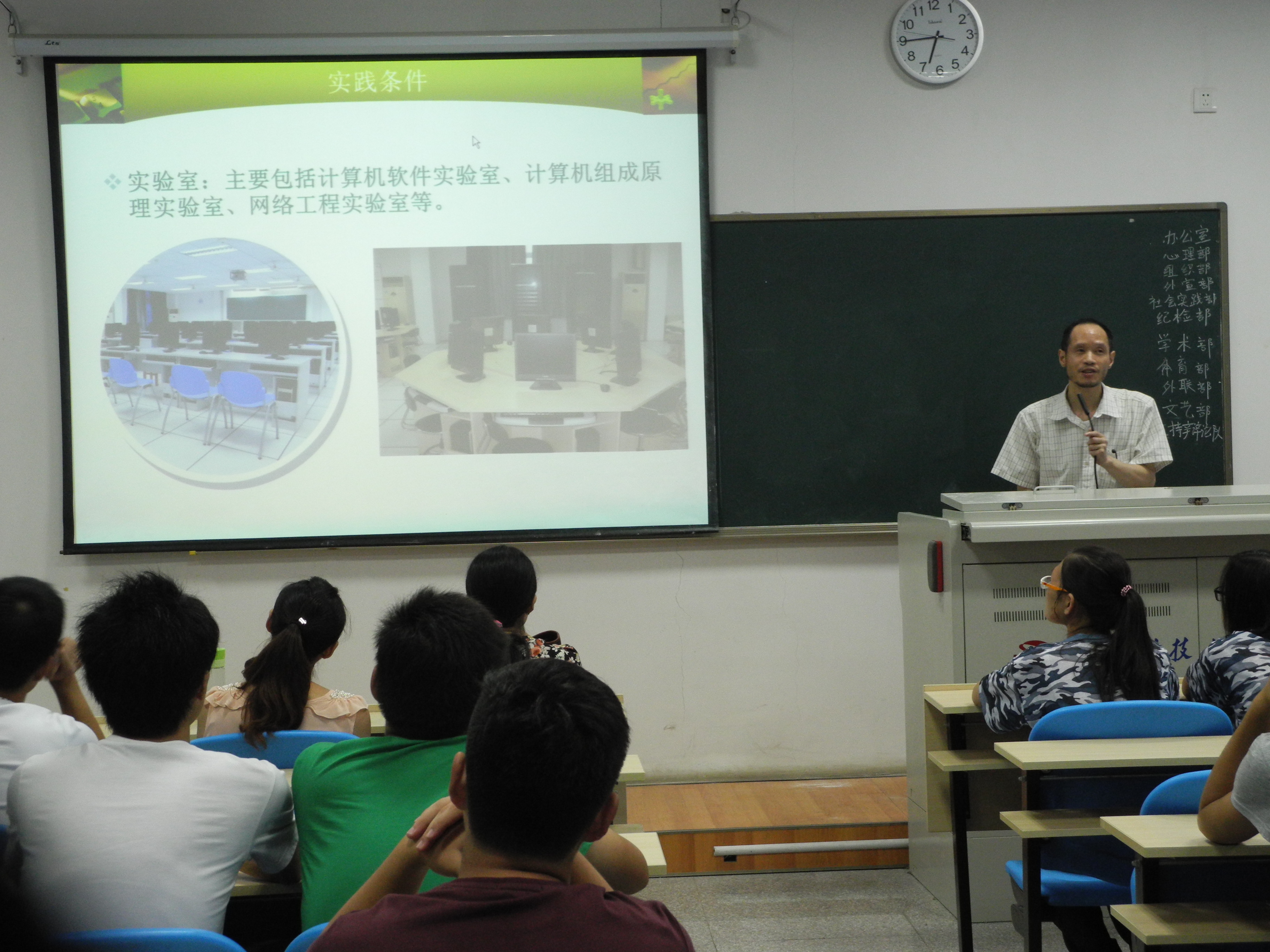 计算机应用技术专业教育在11-112举行,吴奕老师向新生介绍了专业课程体系与学习要求,刘智珺、金兰老师分别就专业发展趋势、就业情况、学习方法等与新生进行了交流,并展示了学生的优秀作品。