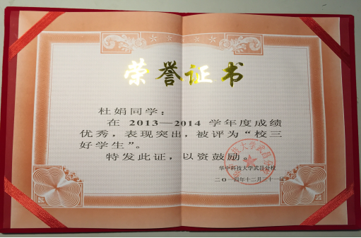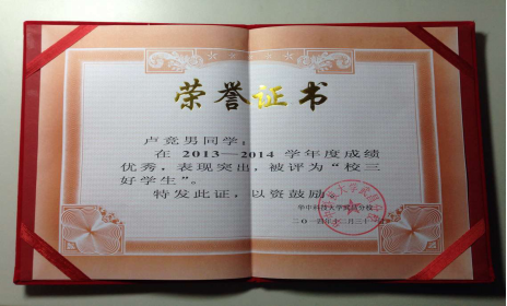 大一期间,任生活部干事一年,被评为校三好学生,校优秀团员;大二期间,通过物理实验技能测试,信科院团学联心理部副部长,被评为院三好学生,校优秀团员,考取驾照,献血300ML,通过英语四级,平均分85.14。