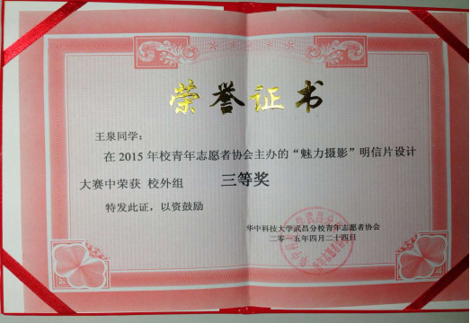 大一期间,任团学联宣传部干事一年;大二期间,通过物理实验技能测试,获得明信片设计大赛三等奖,被评为校优秀团员,院三好学生,并通过英语四级,考取驾照,平均分84.96。