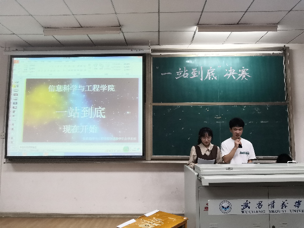 为增强校园文化底蕴,同时增强同学们的文学素养和文化知识。由信息科学与工程学院分团委学生会举办的主题为“遨游知识海洋,‘站’出少年风华”的一站到底活动决赛于5月22日晚18:30在11栋110教室举行。莅临本次活动的嘉宾有信息科学与工程学院分团委学生会主席团的成员们。