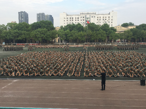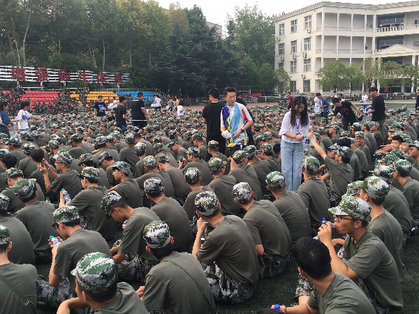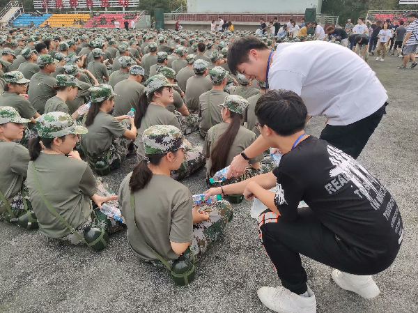 烈日当空,新生们正在进行齐步走训练,他们刚毅而充满活力的脸庞上挂满了汗珠,按照教官的指令认真完成每一个动作,而严厉的教官们眼里满是期望与关心,衣服早已汗湿。等到休息时间,受训新生以热烈的掌声欢迎学院领导讲话。讲话中,汪晓航老师着重于鼓励新生,让大家坚定了训练的信心。随后由信科院学生会干部为19级新生发放矿泉水物资。来自软工的大一新生亮亮喝完矿泉水后,说到:“刚好我的水壶没水了,这个水喝着挺清凉有种泉水的甘甜,谢谢学长学姐的水”。在新生的喝彩声中,学生会干部完成了矿泉水物资的发放。