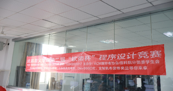 信科院第二届“软帝杯”程序设计竞赛,于2020年11月29日早上9:00,在我院信息技术虚拟仿真云基地准时开赛,本次程序设计竞赛由我院校企合作单位软帝公司与信科院分团委和ACM爱好者协会共同承办。比赛赛制基本遵循ACM赛制,现场实时排名。本次竞赛中,ACM爱好者协会承担比赛相关方面的技术支持,包括出题、验题、比赛环境搭建等赛事工作。信科院分团委学生会与协会配合,开展比赛宣传、报名等宣发工作,并充当志愿者,保障每一位参赛选手正常有序的参与比赛。