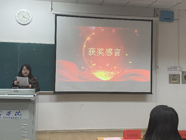 仪式上首先由讯方公司郑总为颁奖典礼致词,郑总代表讯方公司向本次获得企业奖学金的同学们表示热烈的祝贺。郑总说校企合作是现在的大方向,将来我们将面向5G让各位同学学习到更多了解到更多。优秀学生的奖励也是人才培养工作的重要环节,设立讯方奖学金是为了奖优促学,充分体现了企业和学校对人才培养的高度重视。同时,紧接着马主任宣读了2019—2020学年度讯方奖学金的获奖名单。一共有7名同学获奖,讯方通信工程1701班季葆萍、讯方通信工程1801班刘宇婕、讯方通信工程1901班董海洋获得一等奖学金1000元,讯方通信工程1701班王安格、王月、讯方通信工程1901班高子豪、雷冲分别获得二等奖学金500元。魏院长为一等奖学金获奖者颁奖,郑总为二等奖学金获奖者颁奖。颁奖后,学生代表季葆萍、董海洋分别做了发言。