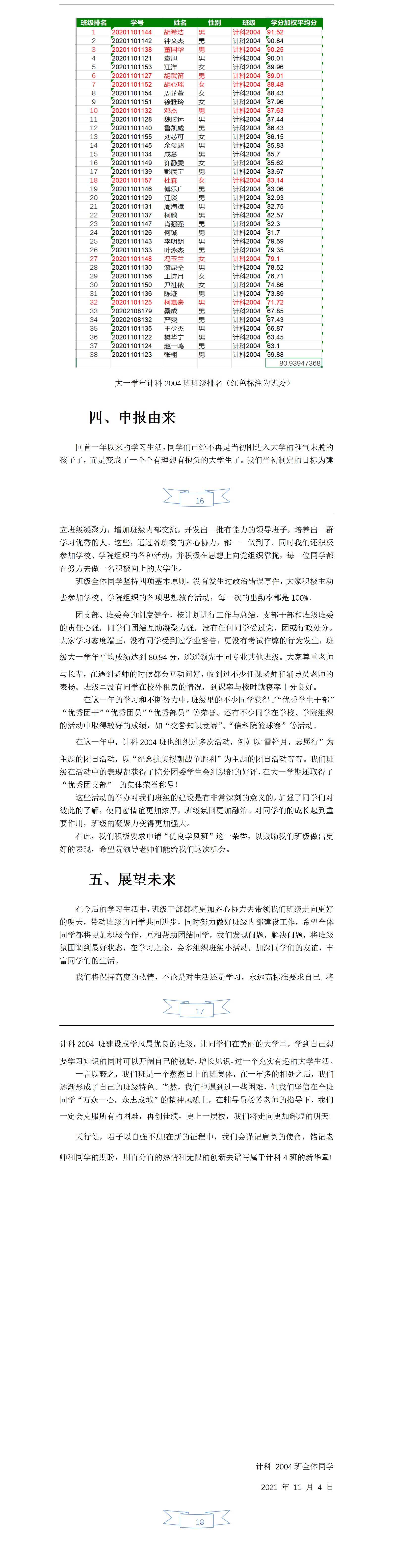 2020-2021学年度优良学风班事迹材料——计科2004班