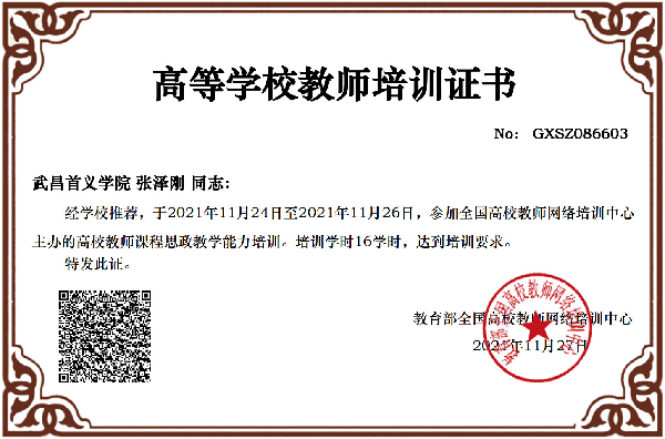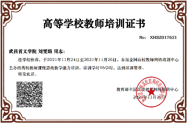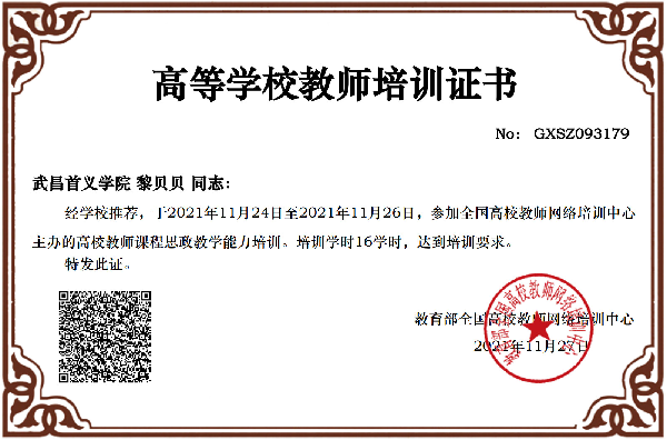 为提升高校教师课程思政建设意识和能力,全面推进课程思政高质量建设。由教育部高等教育司指导,全国高校教师网络培训中心举办,新华网提供支持的高校教师课程思政教学能力培训。