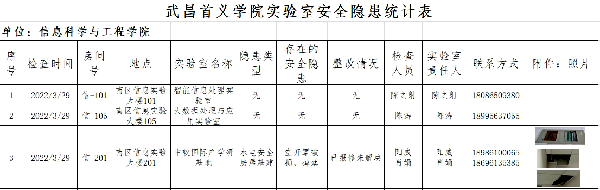 为落实《武昌首义学院实验室安全专项行动实施方案》,切实增强实验室安全管理能力和水平,健全风险防范化解机制,有效防范和遏制实验室安全事故,确保实验室安全平稳有序运行。信息技术实验与实训中心,按照学校的统一部署和要求,于3月29日根据“高等学校实验室安全检查项目表(2022年)”的内容和要求,认真开展了实验室安全隐患的布置和排查工作,并结合我院实验室的实际,制定实验室安全隐患排查整治制度。