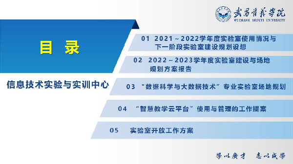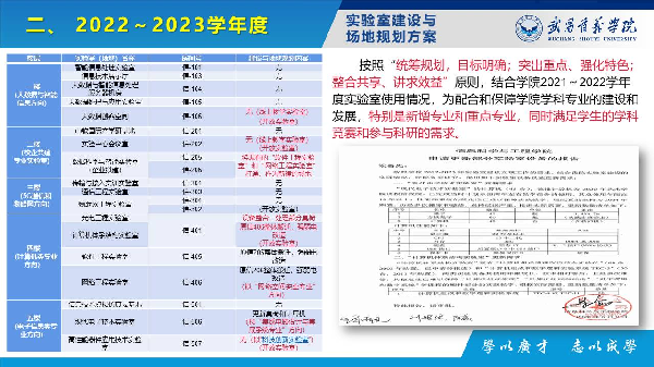 2022~2023学年度,将按照“统筹规划,目标明确;突出重点、强化特色;整合共享、讲求效益”原则,结合学院2021~2022学年度实验室使用情况,为配合和保障学院学科专业的建设和发展,特别是新增专业和重点专业,同时满足学生的学科竞赛和参与科研的需求。在保障实践教学的前提下,提出新建“数据科学与智能实验室”,更新“现代电子技术实验室”“计算机体系结构实验室”的仪器设备,并对信息实验大楼的相关实验室场地进行调整和整合。