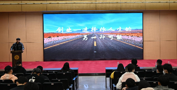范楚峻,计科zsb2103班。他的主题的是“创业——选择你人生的另一种可能”,在考研、就业的主流路线中,他选择了完全不同于大部分人的创业之路,他从疫情时期建立“校园一公里”到创办的“创客咖啡”,用亲身经历告诉我们要确立目标并持之以恒的坚持下去。