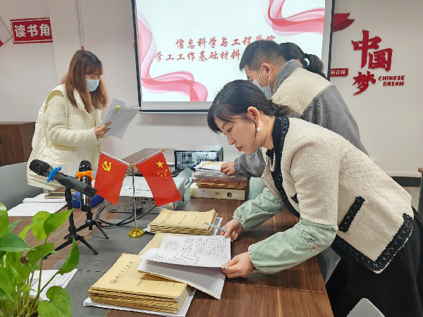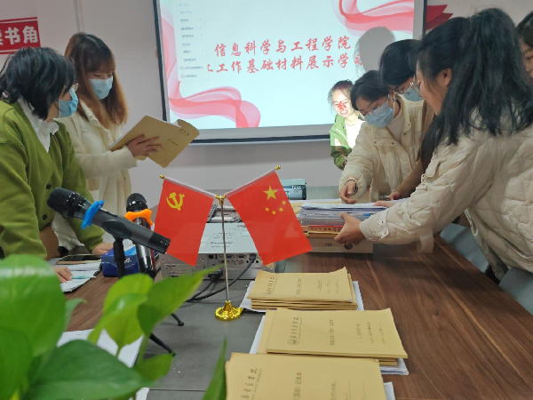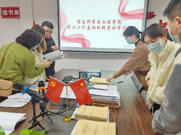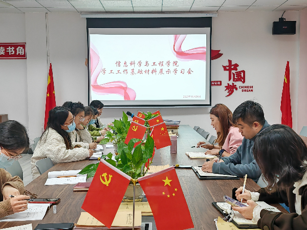 为加强学院辅导员队伍业务能力,优化辅导员工作规范,11月24日上午9:30信息科学与工程学院全体学工进行学生工作基础材料分享活动,旨在促进辅导员之间的交流和学习,提升工作水平和成效,会议由信科院党总支副书记汪晓航主持。