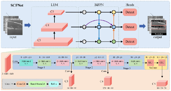 该成果面向智慧工业钢铁智能监测应用场景,提出了一种新型的轻量级钢铁检测网络(SCFNet),实现了高效快速的钢铁缺陷检测,采用加权双向特征金字塔网络进行缺陷特征融合,增强了模型检测低对比度缺陷的能力。实验结果表明SCFNetNEU-DET数据集上的定量指标结果优于其他十余种基准方法,mAP指标达到了81.2%