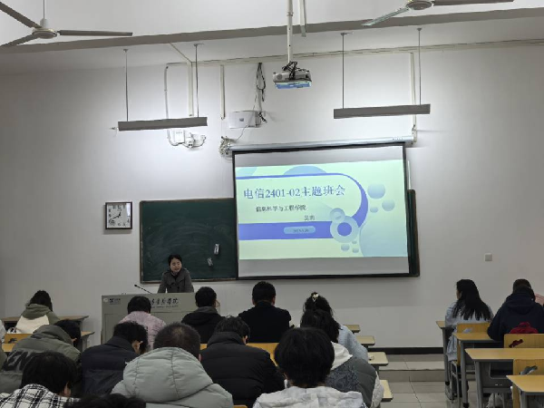 2025年3月19日电信2401-02班班主任吴莉老师在嘉鱼校区和所带两个班的学生见面,开展新学期师生交流研讨活动。