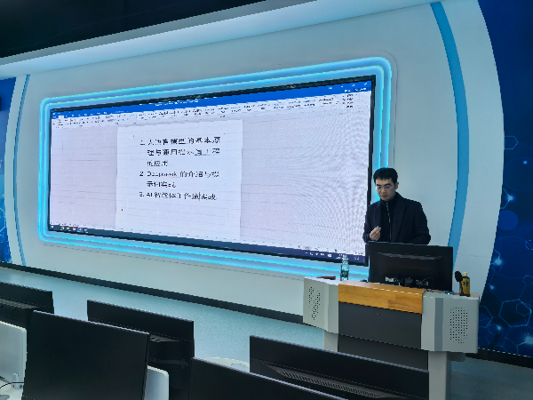 4月2号下午2点至5点,我院校企合作企业武汉厚溥数字科技有限公司给我院全体教师在信息实验大楼105教室开展了一场聚焦AI技术的深度培训。此次培训特邀武汉厚溥数字科技有限公司高级工程师赵冲主讲,为教师们带来了一场知识与技术的盛宴。