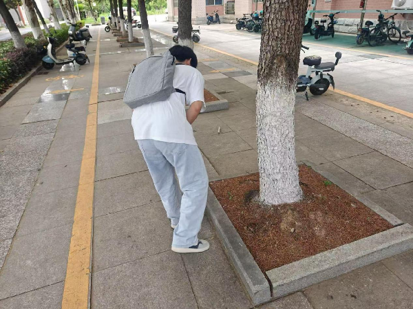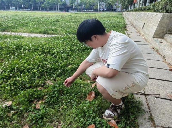 会后,同学们满怀期待地前往校园内开启了“五感寻幸福”之旅的探索。在校园里用明亮的眼睛、机灵的耳朵、灵敏的鼻子,以及灵巧的双手寻找着一切美好的事物。每找到一样事物,同学们或用胶带贴在指定位置,又或拿出手机拍下精彩瞬间,将幸福定格。在这个过程中,同学们的脸上始终洋溢着快乐,专注地在校园的每一个角落探寻美好的踪迹。