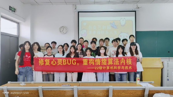 辅导员彭苾蕊组织2022级计算机科学与技术专业学生于11教604举办心理健康专题教育活动。会上,彭苾蕊以“当代大学生的情绪算法”为切入点,引导学生将负面情绪类比为程序BUG。计科2201班班长张芮同学邀请大家对近期校内发生的各类事情进行分享。在“小组debug”活动中,学生们分享着近期困扰事件,大家通过“情绪状态分析矩阵”进行归因,并赠送手写“情绪修改卡片”。这些卡片上有的写着鼓励的话语,如 “阳光总在风雨后,相信你能战胜困难,迎来属于你的彩虹”;有的提供了实用的情绪调节方法,像 “深呼吸,放松肌肉,想象自己身处宁静的海边,让海浪带走你的烦恼” 等。同学们把“自我否定循环”改为“成长型思维函数”、“增加运动释放缓存模块”等创意建议让现场笑声不断。卡片虽小,却承载着同学们之间满满的关心与支持,让收到卡片的同学脸上洋溢着温暖的笑容。