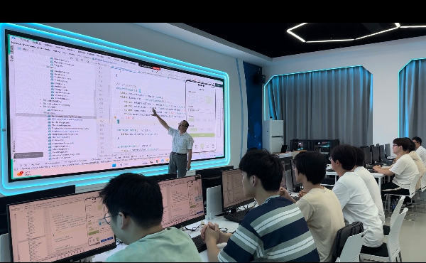 午后的阳光洒进信息科学与工程学院的实训实验室,空气中弥漫着专注的气息。键盘敲击声此起彼伏,与各小组热烈的讨论声交织在一起,充满了探索与实践的活力。在展厅区域,人工智能应用展台同样引人注目。余哲、李梦雨、夏文迪等几位年轻的老师正带领着学生进行应用展示的拍摄工作。他们或调试设备,或指导学生操作演示模型,镜头捕捉着智能算法运行时的精妙瞬间和师生们专注投入的身影,将前沿技术的魅力与教学实践的成果一同记录下来。与此同时,画面定格在实验室前方的讲台。何苗老师神采奕奕,正以当前热门的“企业级移动应用开发项目”为鲜活案例展开教学。他深入浅出地剖析着“用户界面(UI)设计规范与后台数据交互的核心原理”,并重点拆解了企业级开发中至关重要的性能优化要点。何老师巧妙地将产业一线的最新要求与实践经验融入课堂讲授,内容既扎实又贴近实战,牢牢牵引着全场学生的注意力,学生们凝神操作着终端,课堂气氛专注而活跃。