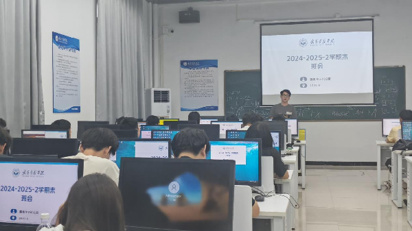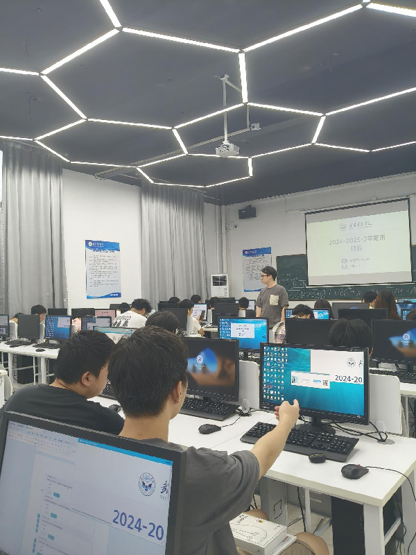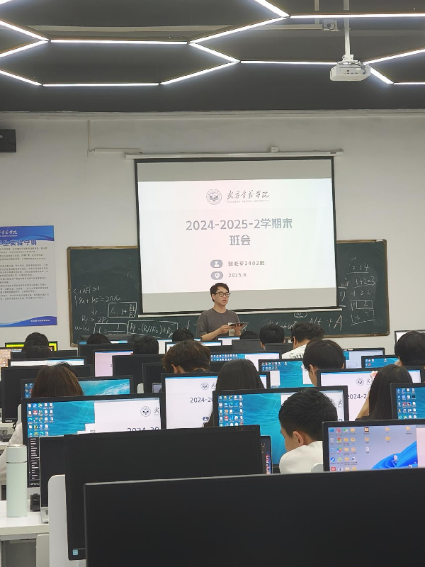 2025年6月19日,人工智能技术应用2402班在嘉鱼校区举行了一场以“筑梦新程,智启未来”为主题的期末总结与发展规划班会。本次班会由班主任、人工智能系青年教师车林威主持,旨在回顾本学期学习情况,动员同学们备战期末,并为即将到来的大二学习和暑期实践明确方向。车老师首先代表全班对张嘉源同学领衔的班委团队在过去一学期里的无私奉献与辛勤工作表示衷心感谢,赢得了同学们热烈掌声。
