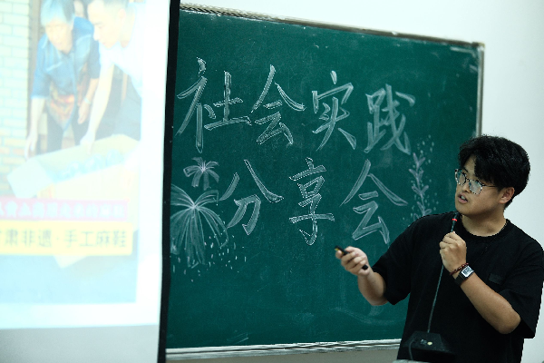 在实践活动分享环节,各团队以及优秀个人轮番登场,用生动的故事与真切的心得体会展现了大学生在社会实践中的担当与成长。物联网腾讯云2201班付书豪团队在杨雅竹老师带领下聚焦麻编的非遗传承,深入传统工艺工坊,用数字化技术为千年麻编搭建云端展示平台,为麻鞋直播带货,发布的宣传片已破万,让非遗在年轻群体中焕发新生;人工智能2402班孙福慧一放暑假就积极参加了北京暑期研学志愿服务,从长城文旅调研到北斗科技园科技探索,再到北京大学人文寻访,以研学实践厚植家国情怀,在行走中感悟文化与科技的交融;计科2402班丁雅妮同学50多天扎根“暑期爱心托管班志愿行”活动,打造作业辅导、传统文化体验、国防教育互动等主题活动,为留守儿童筑起知识与爱的港湾。每支队伍的分享各具特色,从非遗传承、研学实践到公益服务等等维度,立体诠释了社会实践的多元价值,赢得现场阵阵掌声。