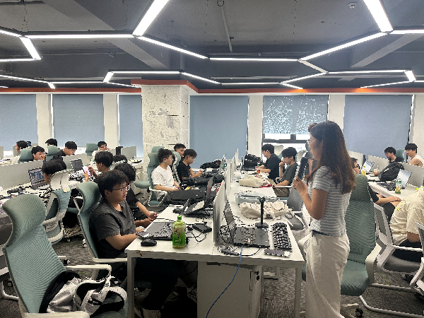 同学们走进企业项目现场,观察项目全流程,直观理解专业理论,打通“理论-实践”壁垒。项目负责人介绍平板嵌入式开发项目的内容,通过项目基础信息及硬件平台的介绍和使用,指导学生团队协作完成硬件调用、UI界面设计、功能实现和项目优化等工作,同学们通力合作,以严谨负责的态度对待每一项任务,主动学习业务知识,积极适应工作节奏,展现出良好的执行力与协作意识,以团队形式圆满完成项目验收工作。