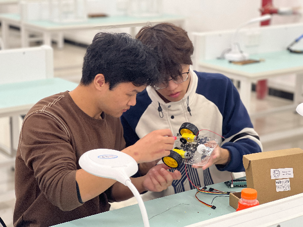 “项目研发的过程,就是将书本知识转化为解决实际问题能力的过程。”指导老师韩洁、金钟杨在实验室巡查指导时表示,竞赛的价值远不止于最终的成绩,更在于让学生在攻坚克难中掌握工程设计的逻辑方法。面对图像采集稳定性不足、算法识别精度不高、舵机响应延迟等一系列问题,学生们自发组建技术攻坚小组,在实验室查阅资料、讨论方案、反复测试,最终通过优化图像预处理算法、改进舵机控制逻辑等方式逐一突破瓶颈,这一过程中培育的团队协作能力与问题解决能力,将成为他们未来专业发展的宝贵财富。