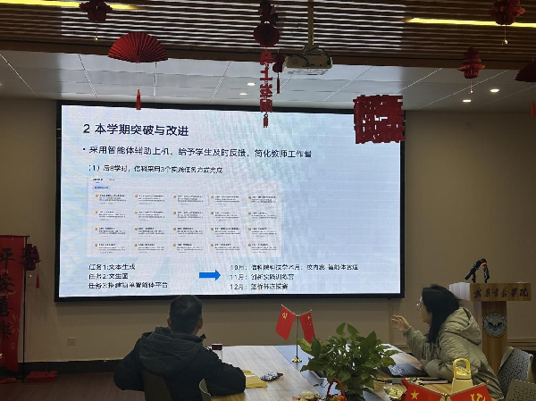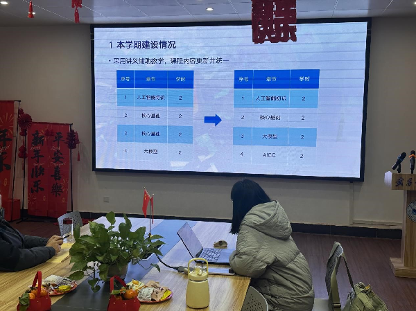2026年1月19日,《人工智能应用基础课程》组织了期末教学总结及研讨交流会,会议由人工智能系主任、课程负责人张硕老师主持,智能与数据教研室主任罗云贵老师以及骨干任课老师参会交流讨论。